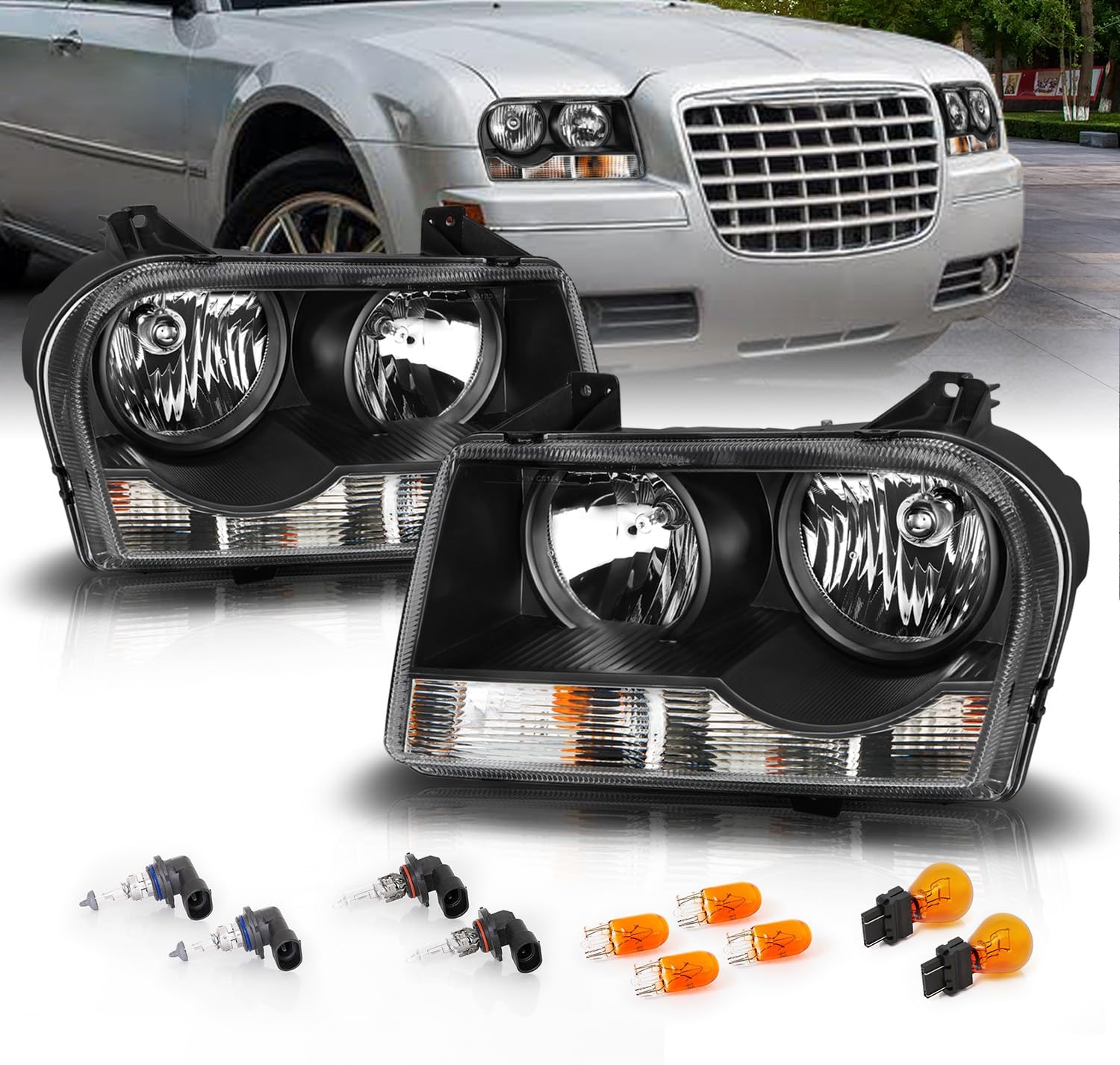 Fits: 2005, 2006, 2007, 2008, 2009, 2010 Chrysler 300 Halogen Trims ONLYDoes Not Fit Chrysler 300C / SRT-8 ModelsDoes Not Compatible with Factory HID Headlamp / Great American Package / Touring Series / Limited ModelsComplete set includes Left (Driver Side) and Right (Passenger Side)CONDITION: Brand New In Original PackagingHigh Quality Headlights made by OEM approved manufacturers with materials that meet or exceed strict OEM requirements.Do not come with installation instructions and professional installation highly recommended.