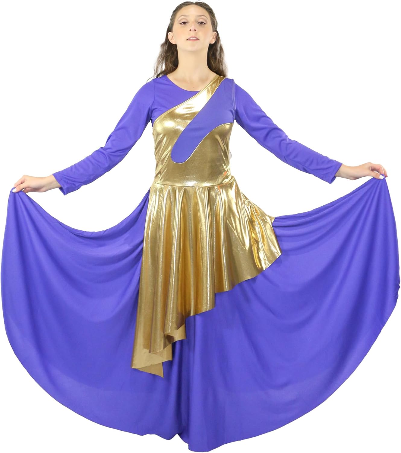 • Unique Design: The praise dance tunic’s carefully designed waist section will subtly contour your perfect figure and allow the top to fit perfectly to your body. The front of the top features a special color-blocked design that moves with your every movement during the dance, creating a vibrant, unique, and stunning visual effect.