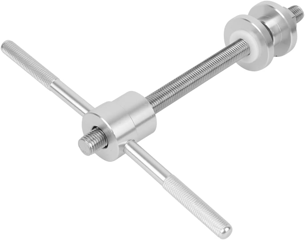 Feature:1. Designed for DIY bike users, slow static force press-in, not easy to damage frame and accessories.2. Do not hammer the headset group, slightly accidentally knock the headpost, damage the bike.3. Good compatibility performance, 30-56mm opening diameter headset all can used.4. Surface round and smooth, without burrs, rhombic knurling radial arm, not slip.5. Made of high quality aluminum alloy and stainless steel material, sturdy, durable and long service life. Specification:Condition: 100% Brand NewItem Type: Headset Press-In ToolMaterial: Aluminum Alloy + Stainless SteelColor: SilverEffect: Repair Tools for BicycleWeight: Approx. 637gSuitable Headset Caliber: Approx. 30-56mm/1.18-2.20inch Package List:1 x Press-In Column2 x Press-In Radial Arm