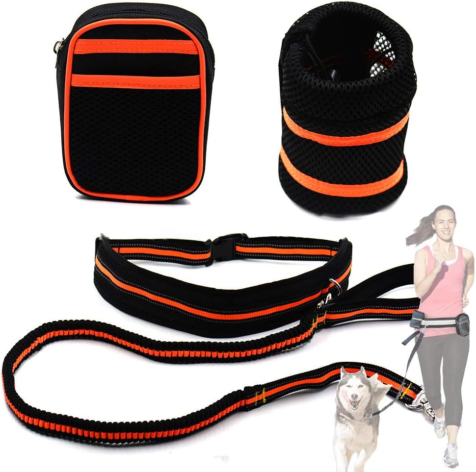 When running, walking or hiking with your dog, it's inconvenient to hold a leash in hand.With this hands free leash, you can freely use your phone, carry equipment without feeling restrained by dog's movements.No more exhausting arms and back pain!Reflective stitching on belt, leash and waist pouch provides greater visibility and safety in low light.Features:Shock Absorbing Bungee for Quick and Safe ReleaseErgonomic and comfortable to weargreat for on-leash training, jogging, runningUnique design and high quality materials provide strength and securitydesigned to safely and comfortably walk a dog without having to hold on to a leadSpecifications:Material: NylonSize:Waist width: 78-110cm/31” - 43”Bungee leash: 125-210cm/ 3.9 ft - 6.88 ftWeight: 320gSuitable for small and medium dogs (within 50kg/110lb)Package included1 x Hands Free Dog LeashEvery pet owner undeniably needs one of these hands-free dog, especially those who had trouble walking their dog and kids at the same time!Order now! Consider ordering another one as a gift to your friend!