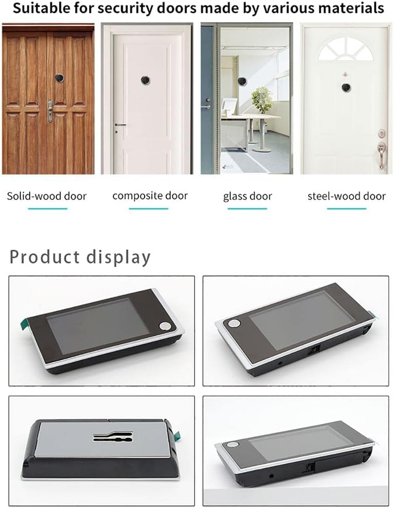 Product description Description:High Tech Peephole Hd Lcd Monitor Camera Doorbell, Screen 3.5 Tft, 320 X 480P Color Video Set, Used With High-Resolution Tft Lcd Monitor To Restore Picture In Details;120° Wide-Angle Lens: Equipped With A 120° Wide-Angle Lens, Clear Insight Into The Details Outside The Door To Reduce Safety Hazards; Instructive Installation - Door Hole Diameter 14-28Mm, Door Thickness 40-100Mm Indoor Device Size Diameter; 32Mmoutdoor Device Size 118X62Mm Aaa Battery X 4 Not Included);Outdoor Invisible Camera (Only Visiable From Indoor): Installed Indoor Visible Camera With A Similar Appearance To The Traditional Peephole With One-Click Viewing Without Storage To Protect Privacy, Great For The People Who Live Alone;High Effective Zinc Alloy Outdoor Camera Body: The Material Is Vandal-Proof, It Can Prevent Human Damage To The Maximum Extent;Specification:Material: Pvc + Zinc AlloyPackage Includes:1Pcs Outdoor Camera1Pcs Indoor Peephole1 Piece Support Rack1 Pack Screws Manufacturer Contact Information Customer Care : (+91-9355851534), lrecomllp@gmail.com