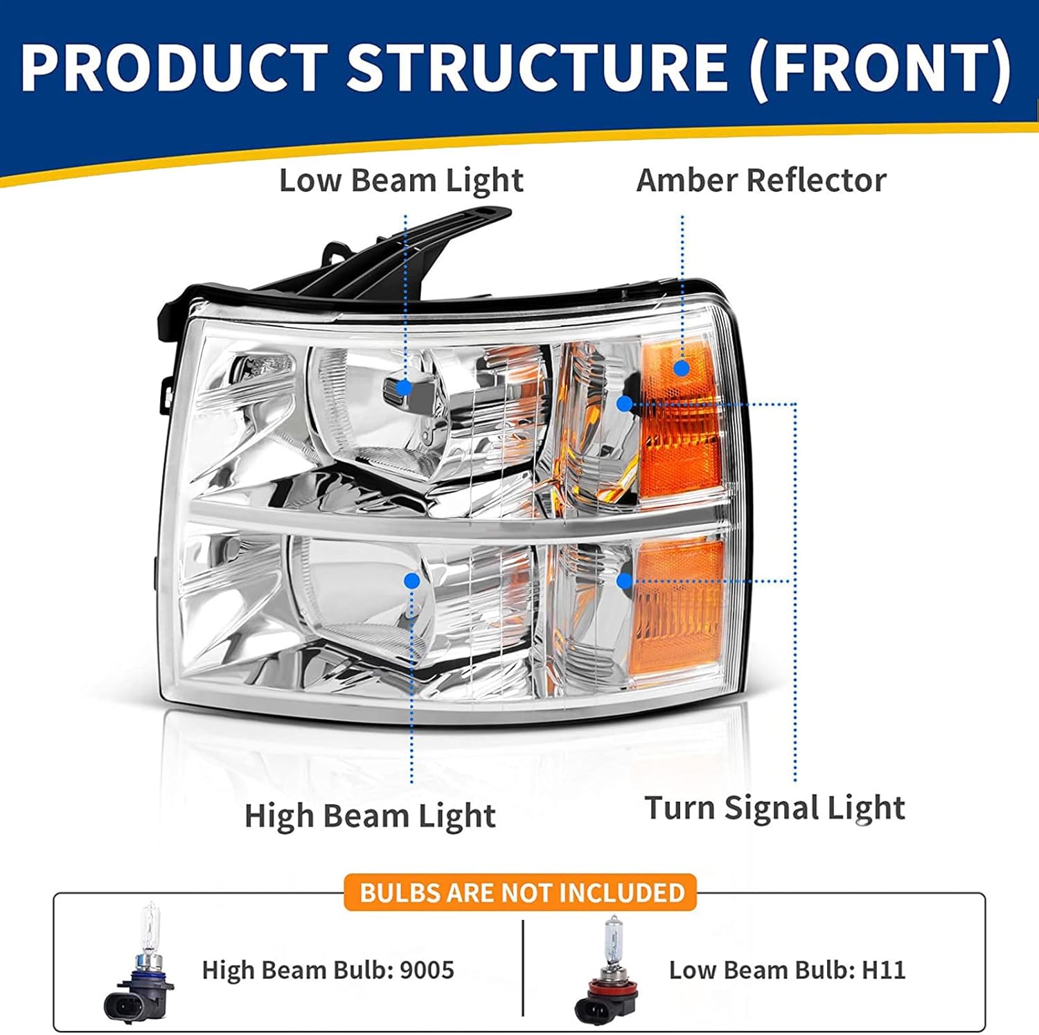 | Compatible with Vehicle Type | 2007-2013 chevy silverado 1500 headlights, 2007-2014 chevy silverado 2500 HD headlights, 2007-2014 chevy silverado 3500 HD headlights |