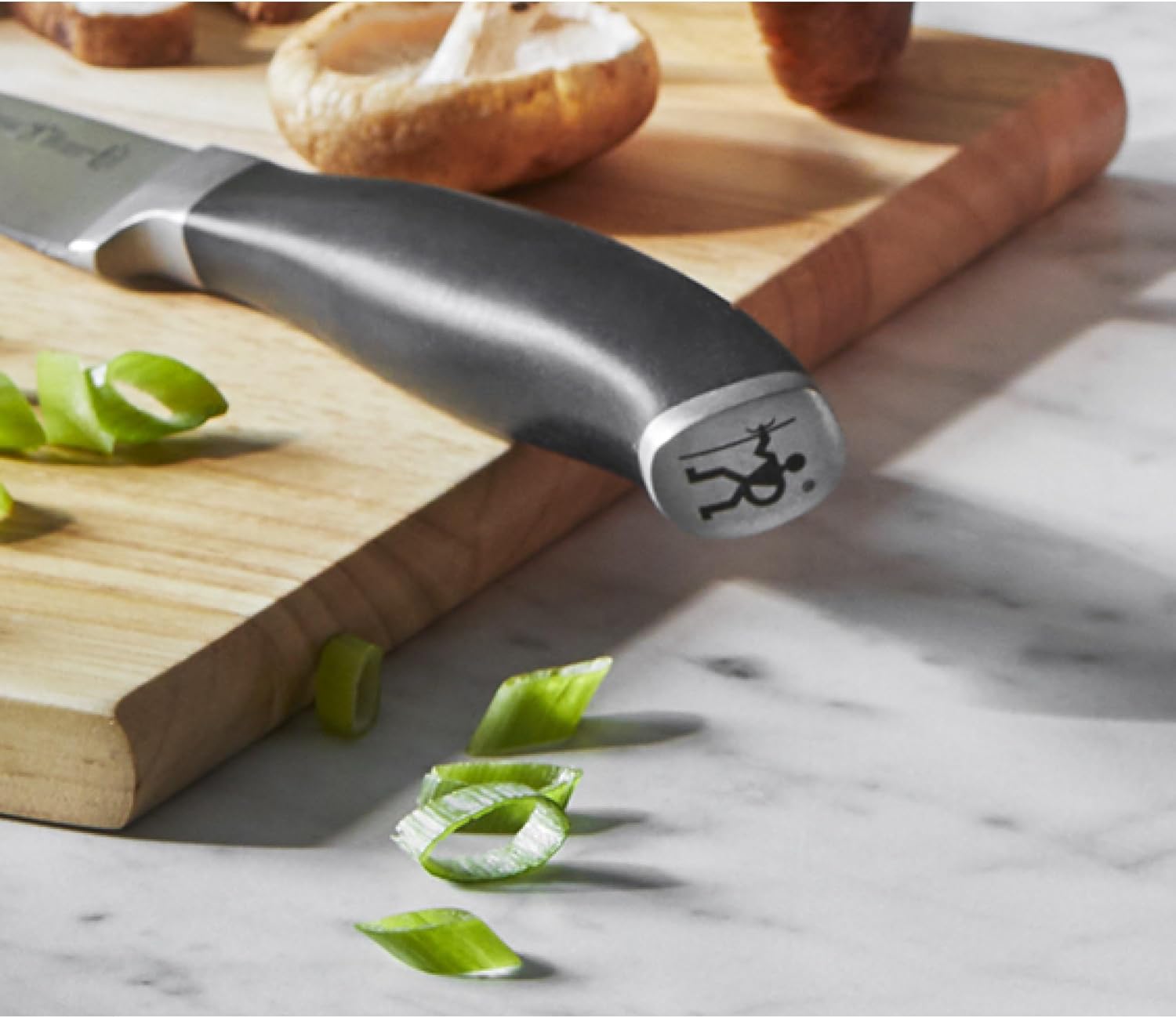 Enjoy Exceptional Sharpness in a Beautiful Contemporary Design Equip your kitchen with all the tools you need with HENCKELS Elan. From slicing crusty loaves of bread with the 8-inch bread knife to dicing vegetables with the 7-inch hollow edge santoku, HENCKELS Elan has a knife that gets the job done. Available individually and in a variety of sets, Elan knives help you make quick work of prep work. HENCKELS Elan knives boast a contemporary design combined with exceptional functionality. Fully forged from a single piece of high-quality German steel, Elan knives feature fine-edge blades, perfect for precision cutting. Curved for comfort, the ergonomic handle is finished with a stylish, stainless-steel end cap that adds aesthetic appeal to your knife block. HENCKELS Elan is dishwasher safe, though hand washing is recommended.