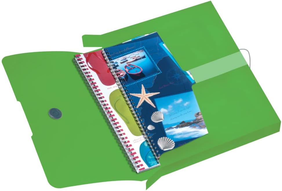 Collection box A4 PP film. With design print. Back width: 4 cm. Elastic, round, with locking button. Glued back label, removable. Opaque apple. 1 pc.