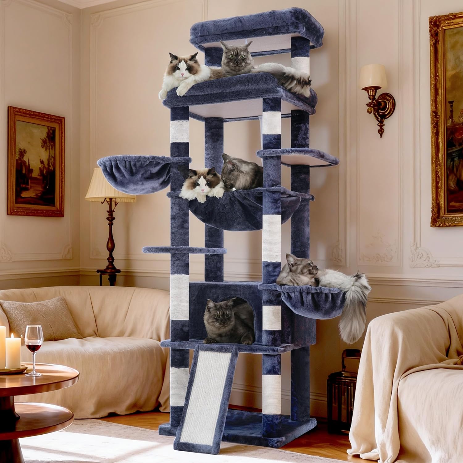 | Material Type | Engineered Wood, Plush Fabric, Sisal |