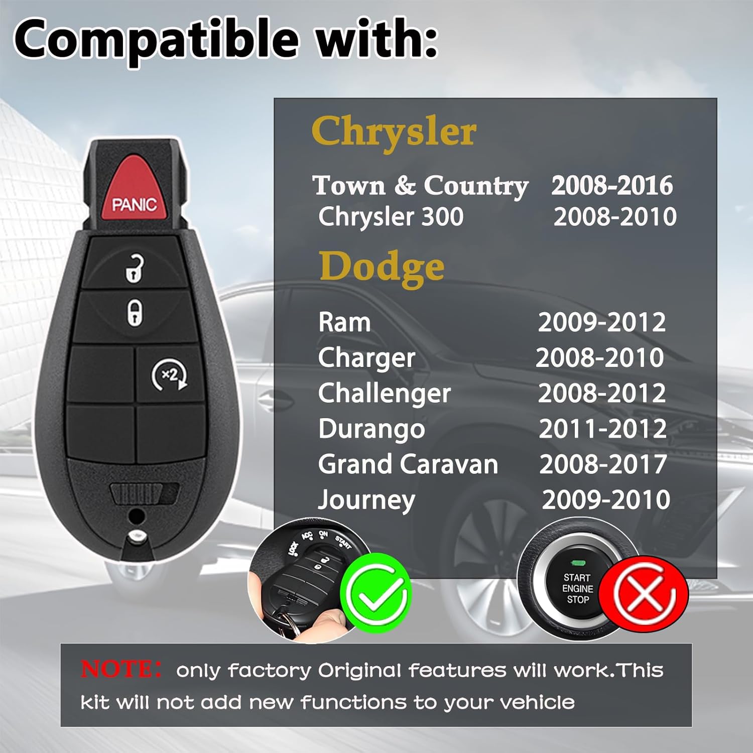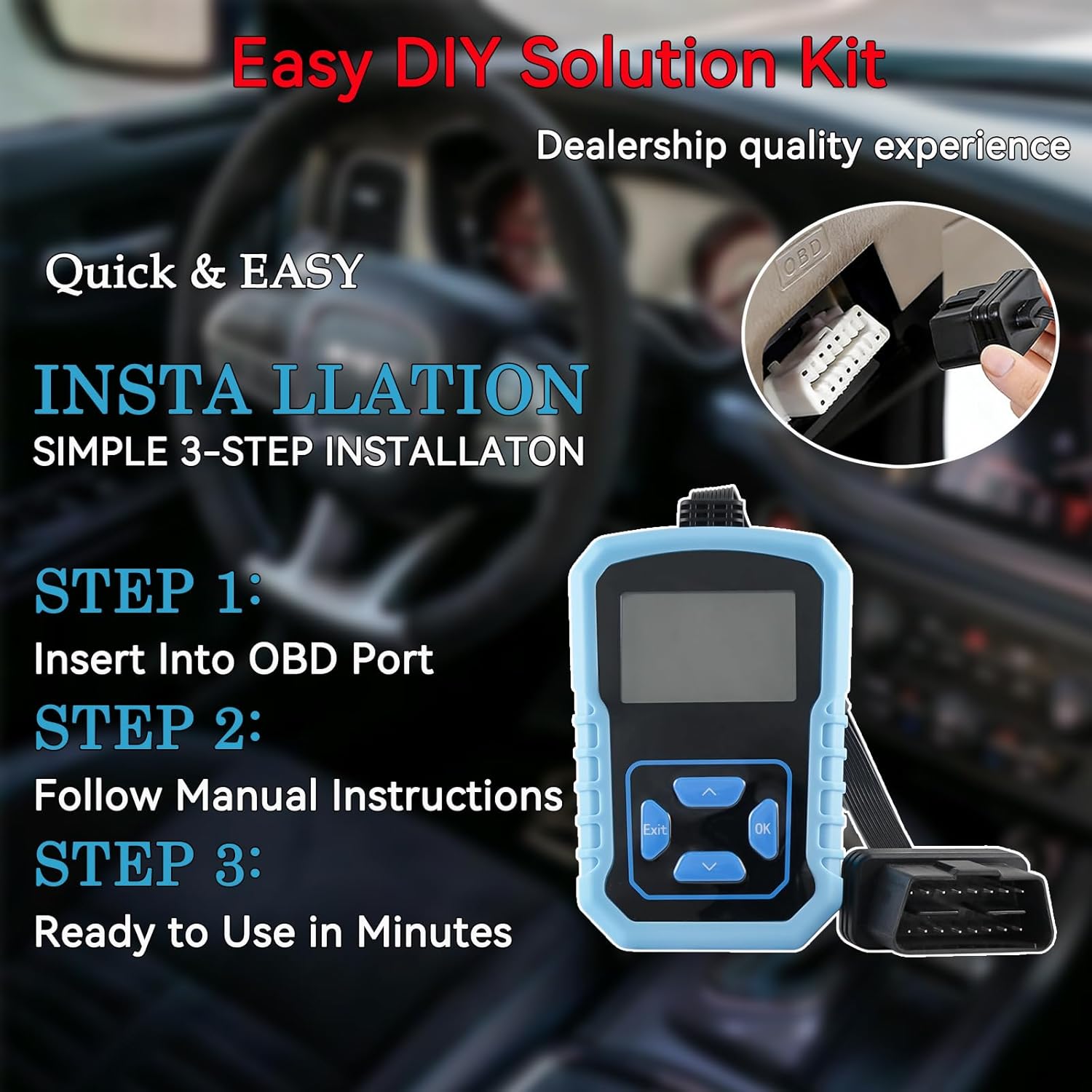 | Included Components | .1x OBD tool(At home DIY key fob tool), .1xUser‘s guide., 2x Keyless Entry Rmote Key Fob, 2x3Buttons pads, 2xkeyring |