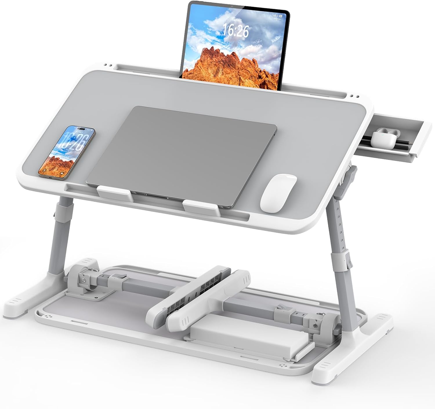 | Additional Features | Adjustable height, adjustable angle, drawer, 1 stopper, flat slot with charging hole, foldable, portable |
