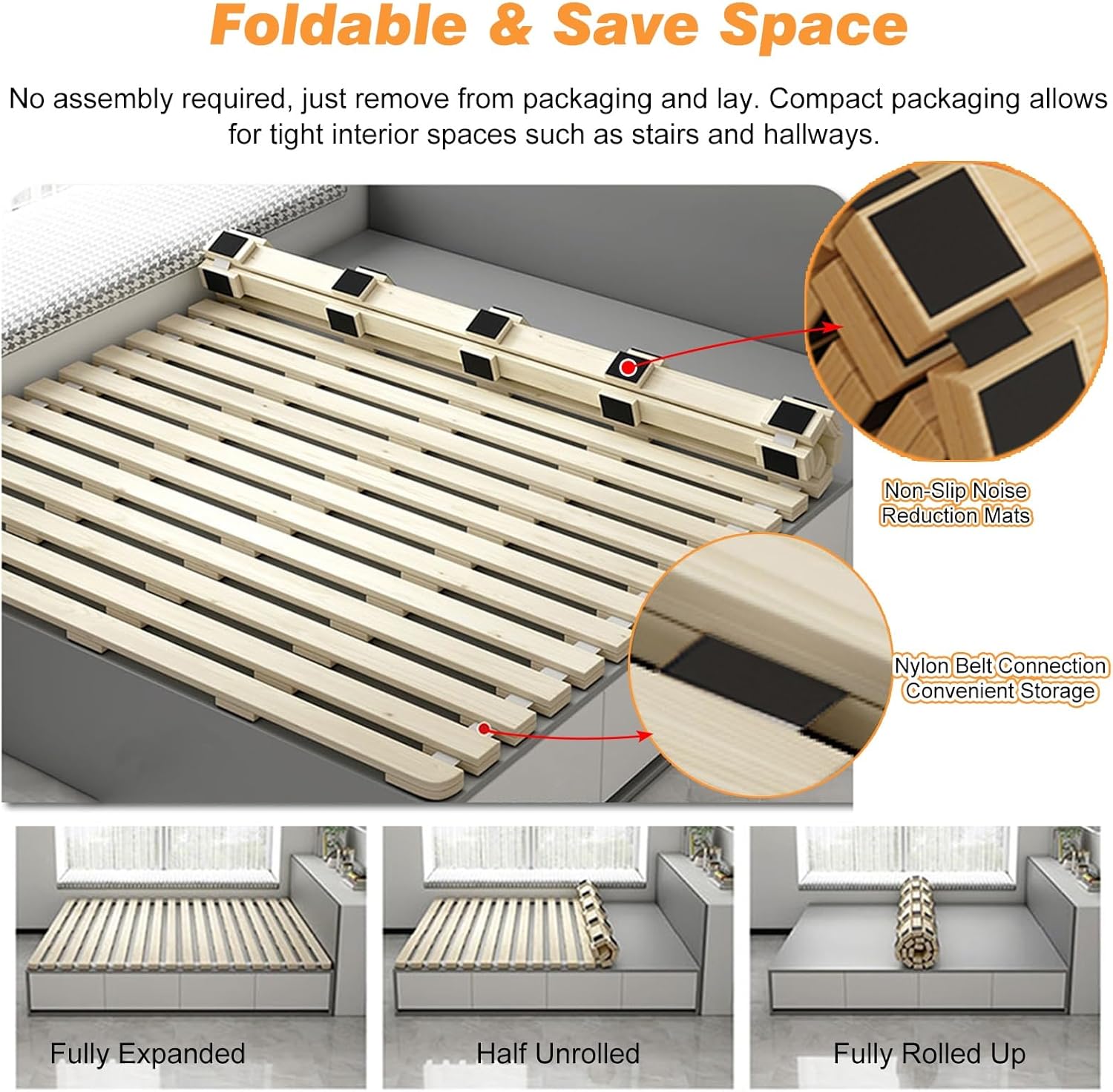 Wooden Bunkie Board: Are you looking for an ultra minimalist bed frame? Do you still struggle with not being able to get into a deep sleep at night rest? Or are you still woken up by a squeaky mattress? With our wooden slats, you can enjoy a more hygienic and comfortable sleep, waking up feeling refreshed and energized. Specification 1. Material: Pine Wood 2. Load Bearing: 500kg(1100 Ibs) 3. Slat Wide: 10cm(3.94 inch) 4. Slat Gap: 5cm(1.97 inch) 5. Slat Thickness: 2.6cm(1.02 inch) 6. Prior to placing your order, please measure the width of your bed to ensure these slats are a perfect fit. Features 1. Thickened anti-skid pad at the bottom, anti-skid design, no noise impact 2. Great replacement for broken or damaged bed slats 3. The mattress will not sag through the plank support gap 4. It helped a too soft mattress and the support and air circulation your mattress needs 5. Rounded edges and corners to avoid knocks 6. Great for lofts and other low-clearance/sloped ceiling bedrooms 7. It can be rolled up and folded for easy storage 8. The even spacing between the slats facilitated by the fabric banding was easy to just roll out on the frame Package Content 1× Bed Slat (Wood Slats Only, Bed Frame Not Included) Notice 1. If a slight odor is normal, it will disappear within two to three days. 2. Please confirm the size before purchasing. Please allow 1-3cm size deviation due to manual measurement.