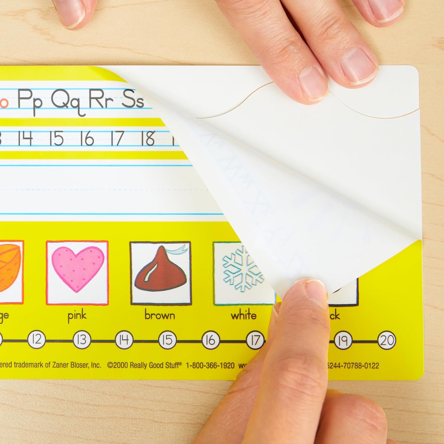 Put Curricular Content Where Students Can Access It Easily - On Their Desktops! These durable helpers are easy to peel and stick on any desktop surface to stay put all year. Available in a variety of styles, Really Good Stuff Desktop Reference Nameplates will add a colorful touch of learning to your classroom.Made of strong vinyl, Really Good Stuff has the most durable desktop reference name tags on the market! Easy to peel and stick onto any surface, these desktop helpers will stay put all year long. What’s better? They easily wipe clean with a damp cloth, helping to keep them accessible for your students.Each manuscript student nameplate is full of bright colors and brings a pop of style and organization to every student’s desk. Measuring at 12” by 4” each, these are the perfect size for any classroom.A great tool for students to practice critical thinking, writing skills, counting and directions all in one place! This reference name tag features upper and lowercase Zaner-Bloser letters, numbers 1 to 20, left and right handprints, colors and a number line.