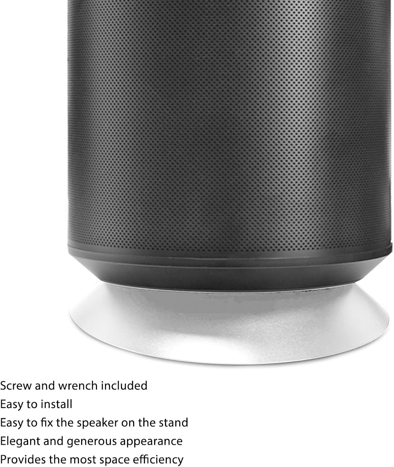 1. COMPATIBLE MODEL: Speaker base stand designed for speaker. Non slip padded design, for desktop display.2. STURDY AND : Made of premium metal, this speaker base stand provides stable support and is sturdy and .3. TILTED DESIGN: The bottom of the speaker base has a diameter of 120mm and offers a 10° tilt to adjust the sounding angle for better sound.4. EASY TO INSTALL: This speaker base mount comes with screw and wrench for easy installation. Easy to fix the speaker on the base.5. SPACE SAVING: For speaker desktop base offers the most space efficiency while providing an elegant and generous look.Spec:Item Type: Speaker BaseMaterial: MetalBase Diameter: Approx. 120mm / 4.72inSuitable: For SpeakerHow to Use:Use after installation.PackageList:1 xSpeaker Base1 x Screw 1 x WrenchNotice:Manual measurement, please allow some errors.
