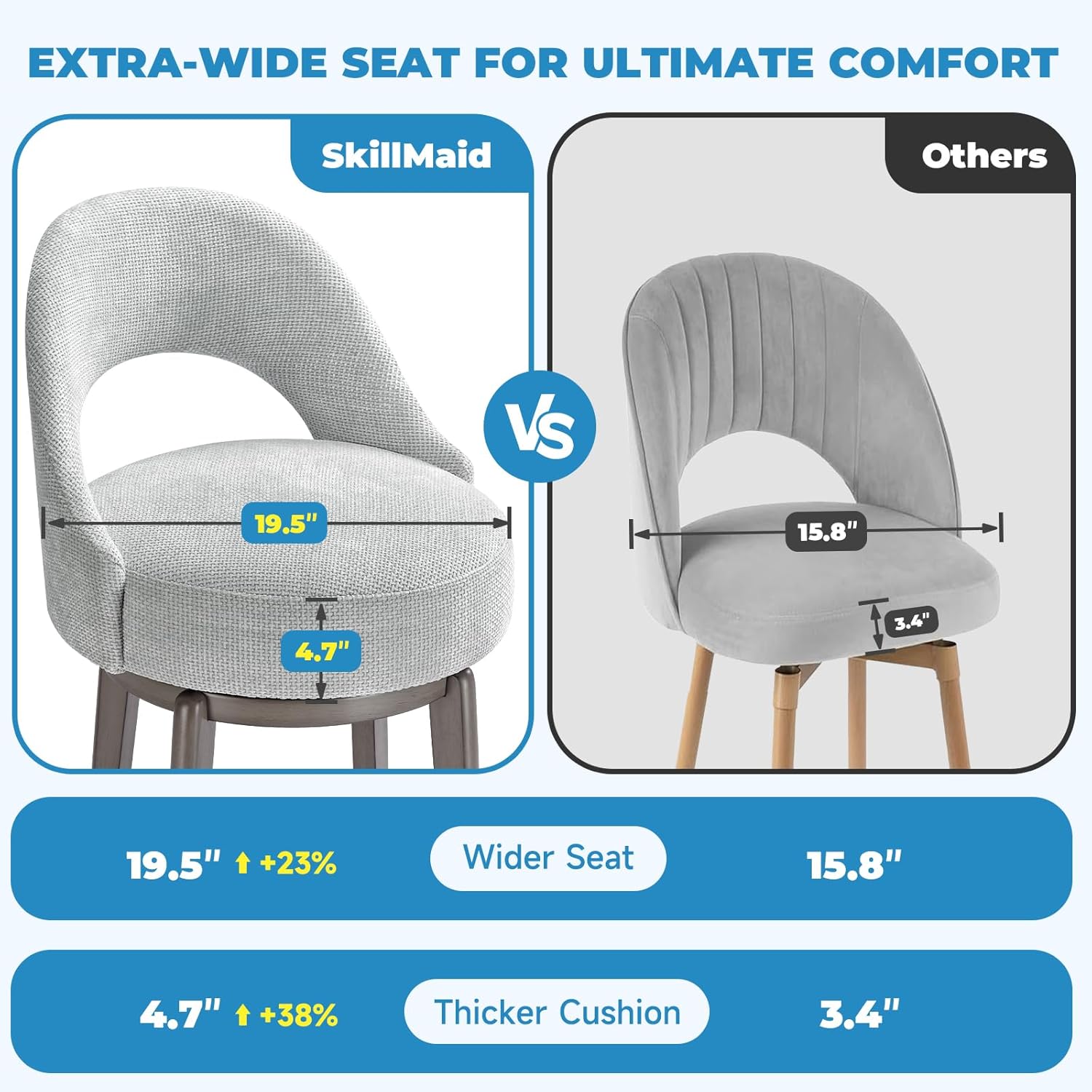 | Additional Features | 360° Swivel, Natural Rubber Wood, Velvet Upholstered Seat, Wrap-around footrest |