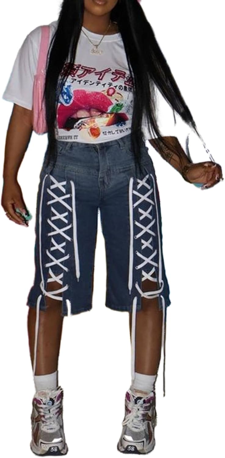 Stylish Design: These women’s denim shorts feature a trendy high-waisted design that flatters various body types, making them perfect for summer outings or casual wear.Comfortable Fit: Made with stretchy denim fabric, these shorts provide comfort and flexibility. The loose fit allows for easy movement, whether you’re lounging at home or out with friends.Functional Pockets: Equipped with practical pockets, these shorts offer space to store small essentials like your phone or keys, providing both style and convenience.Versatile Styling: The straight leg and Bermuda styles make these shorts versatile enough to pair with crop tops, t-shirts, or blouses. Dress them up with sandals or keep it casual with sneakers.Durable Quality: Crafted from high-quality denim, these shorts are designed to withstand regular wear while maintaining their shape and color, ensuring longevity in your wardrobe.Trendy Details: Features such as ripped accents, raw hem finishes, and button fly closures add a fashionable touch, aligning with current trends and keeping your look fresh.Easy Care: Machine washable and easy to maintain, these shorts are perfect for busy lifestyles, allowing you to enjoy your stylish summer looks without the hassle of complex cleaning routines.